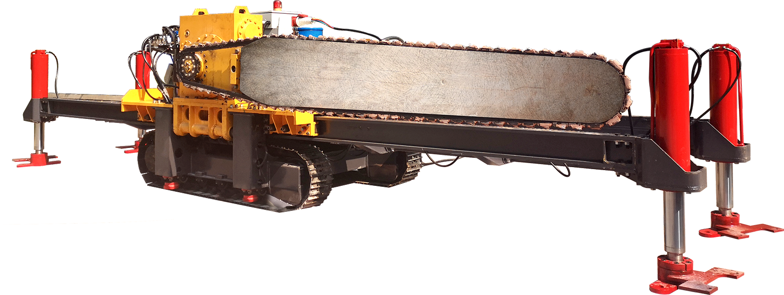 今年会轨道式链臂锯由行走锯机和吊装轨道两大部分组成。取代传统的人工钻排孔,实现一人操作切割和移动轨道的自动化功能,大大降低劳动强度,轻松实现成本低、效益高、生产量大的优势,成品规格不限。适用于大理石、花岗石矿,整体无缝大面积石场开采,石英砂矿无缝开采等