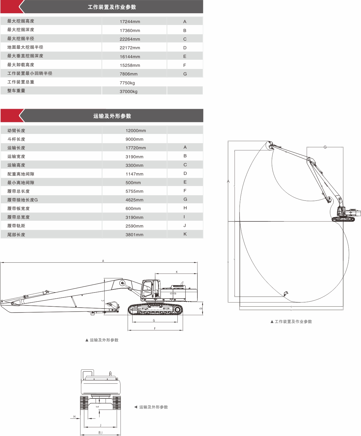 今年会36T两段式加长臂履带式挖机,动臂长12米,斗杆长9米,共计21米。 其挖掘高度,挖掘深度,挖掘半径都得到了显著提升,利用这种超长型动臂和超长型斗杆,操作者可在受地面影响的特殊工况下轻松实现挖掘功能,发挥其巨大威力。 广泛适用于土砂、混凝土等建筑搬运, 楼体拆解, 地铁出入口开挖,高速公路坡面修整,河道疏通清淤及建筑基础、深沟等土石方挖掘作业,能完成标准挖掘机不能完成的特殊任务。