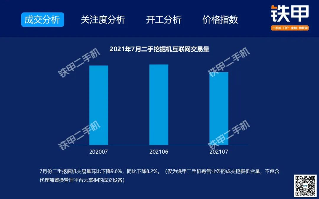 2021年7月全国挖机平均开工率88%,铁甲二手挖掘机互联网交易报告新鲜出炉!