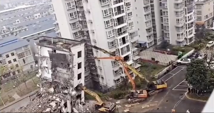 近日,有挖友讲述了一个貌似是正在进行拆迁作业的事件,现场几辆挖掘机在进行拆楼作业时,被拆的大楼倒塌方向发生了偏移,眼看就要砸到旁边的住宅大楼,幸好施工方安排了两辆加长臂挖掘机支撑楼体。下面的朋友也是纷纷开始出谋